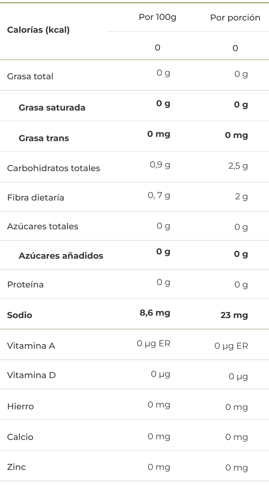 Tamaño de porción: 1 vaso (269g) Número de porciones por envase: 1