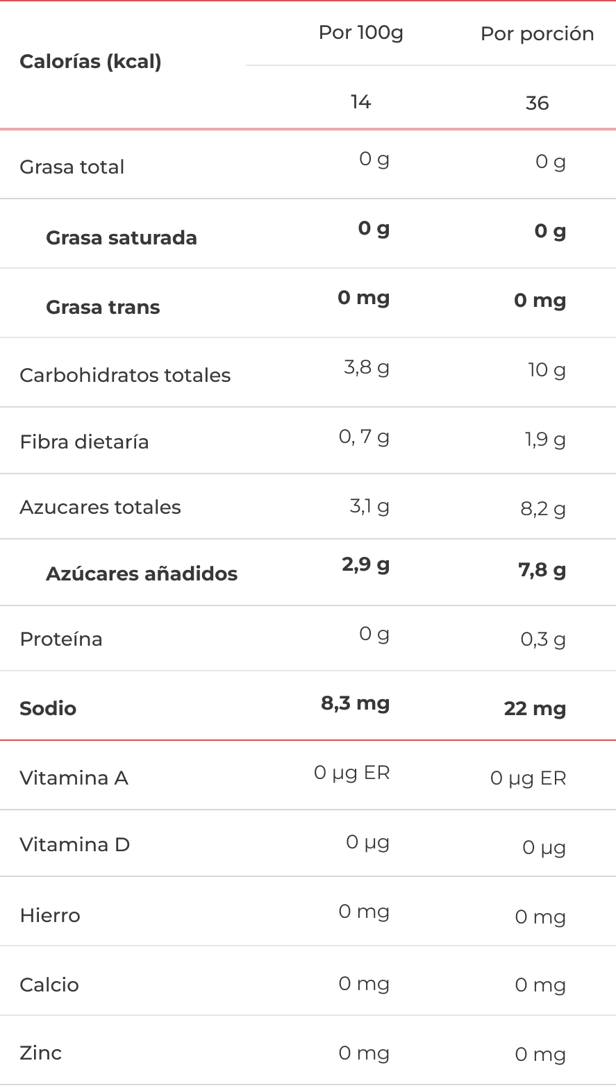 Agua carbonatada, cáscara de café orgánica, flor de Jamaica orgánica, ácido cítrico (acidulante)